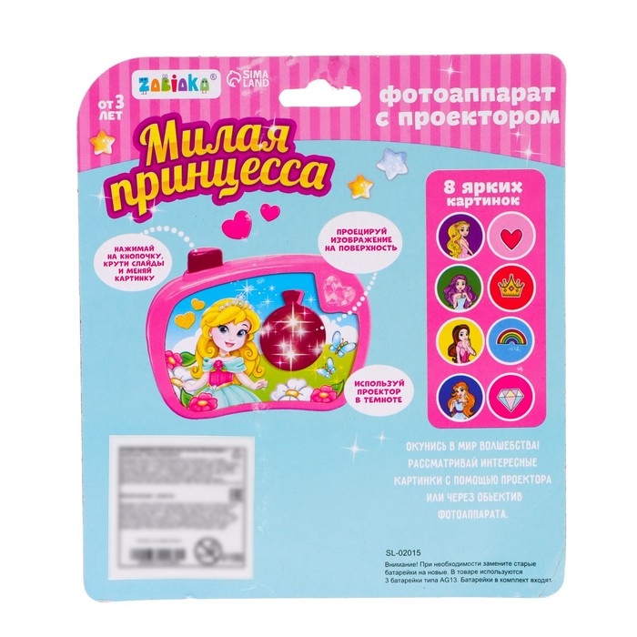 Фотоаппарат с проектором «Милая принцесса» привлечёт внимание трогательным дизайном и надолго займёт малыша. Игрушка научит создавать изображения, поможет развить усидчивость, воображение и абстрактное мышление.