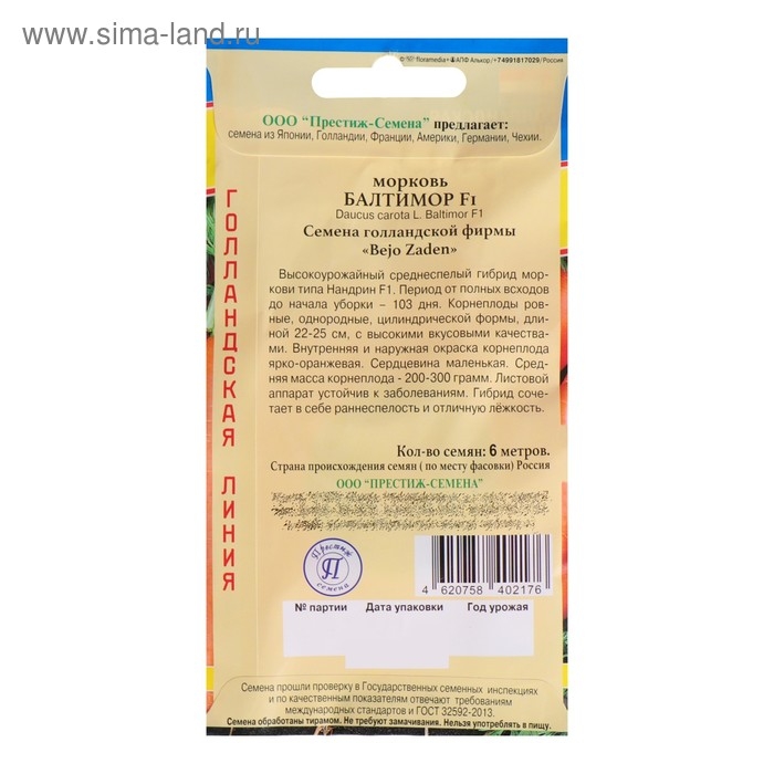Семена Морковь "Балтимор" F1, на ленте 6 м