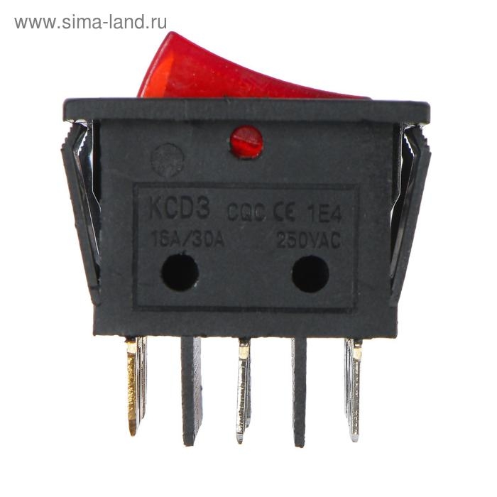 Выключатель кнопочный с подсветкой, с фиксацией, красный