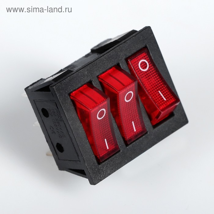 Выключатель трехклавишный с подсветкой, красный