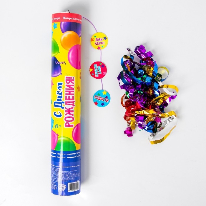 Хлопушка пневматическая «С Днём Рождения», 30 см, с сюрпризом