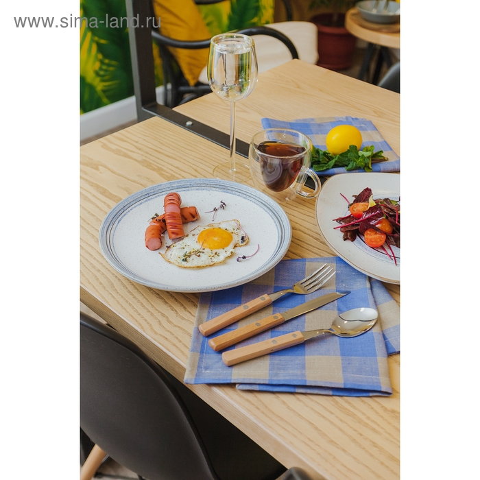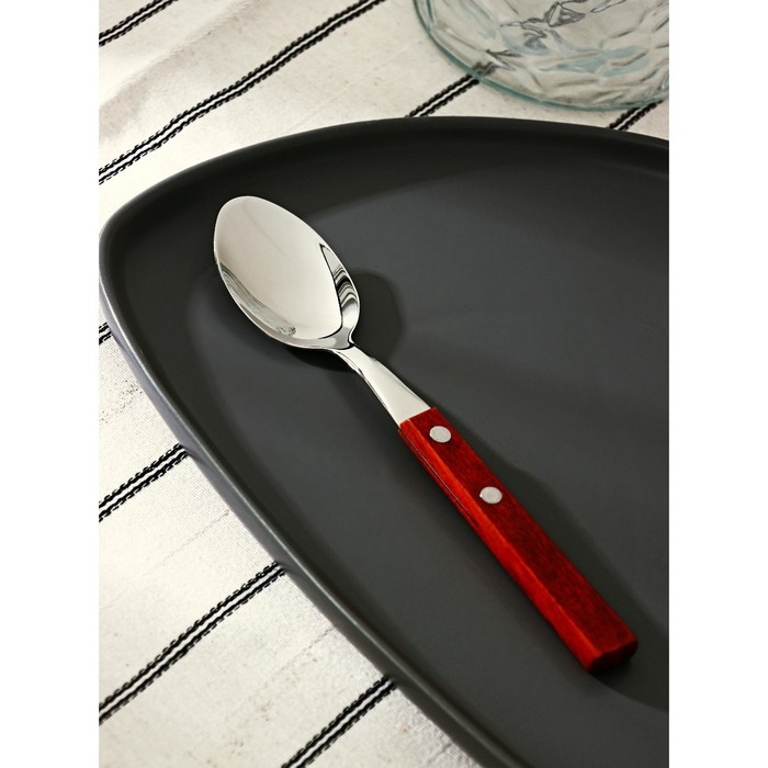 Ложка столовая из нержавеющей стали «Эко-стейк», длина 19,5 см, толщина 1,5 мм, деревянная ручка, цвет ручки МИКС