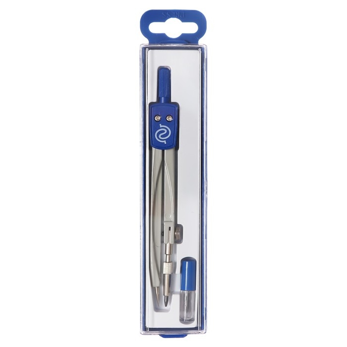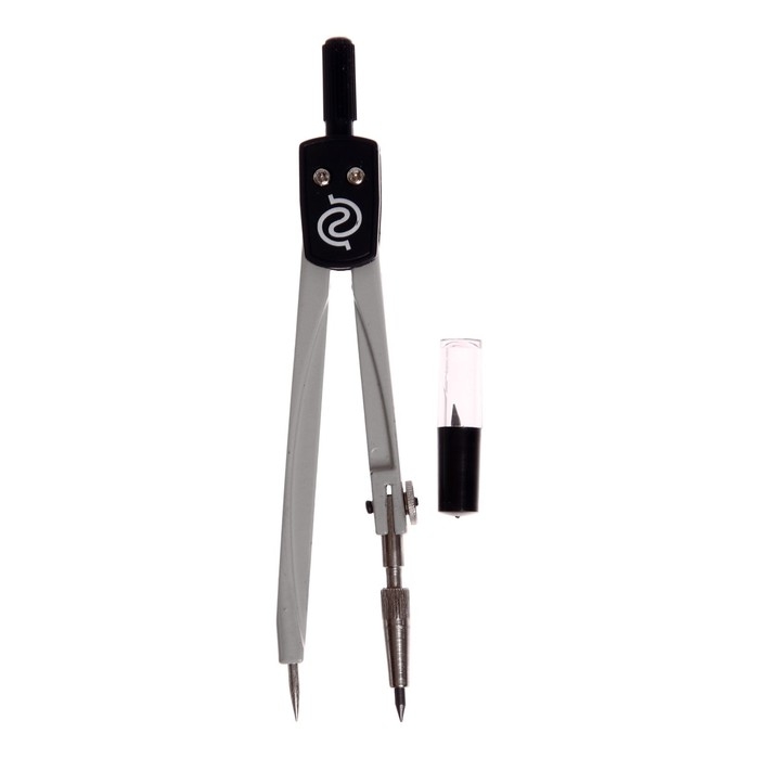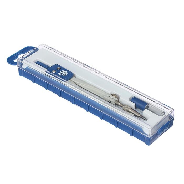 Циркуль металлический + грифели GLOBUS «Школа», 2 предмета (циркуль литой, окрашенный, пенал с запасным грифелем), в футляре