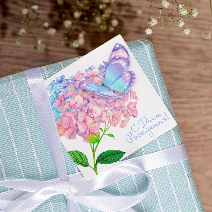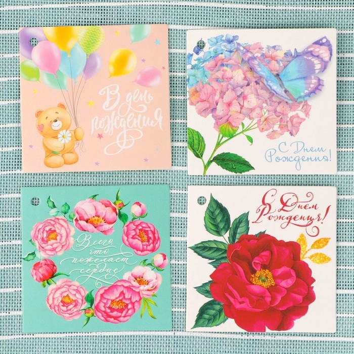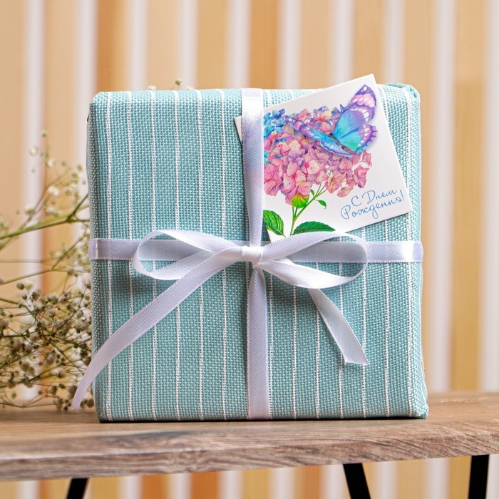 Мешковина упаковочная с нанесением «С Днём Рождения!» с открытками , 0,5 х 4 м