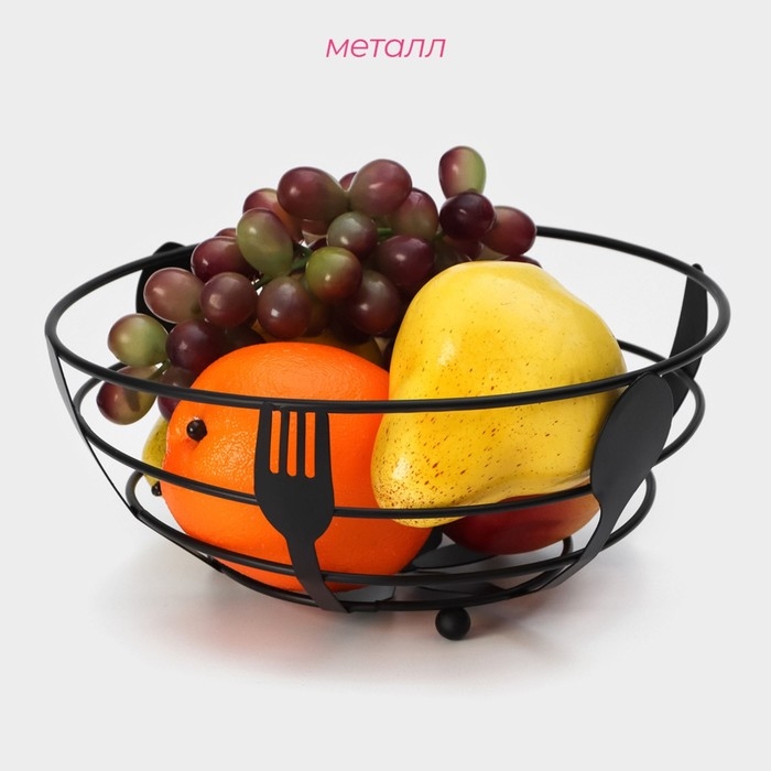 Фруктовница Доляна, 22×22×9,5 см, цвет чёрный