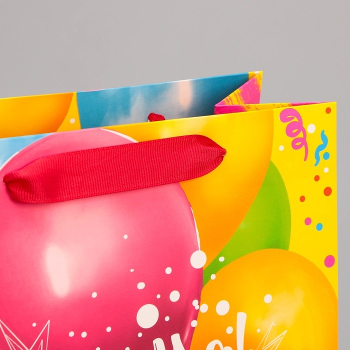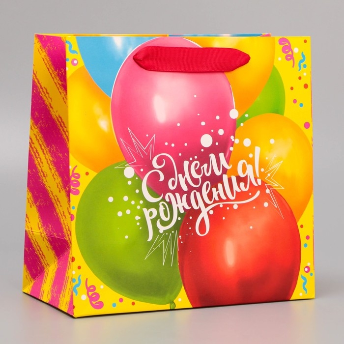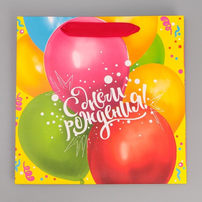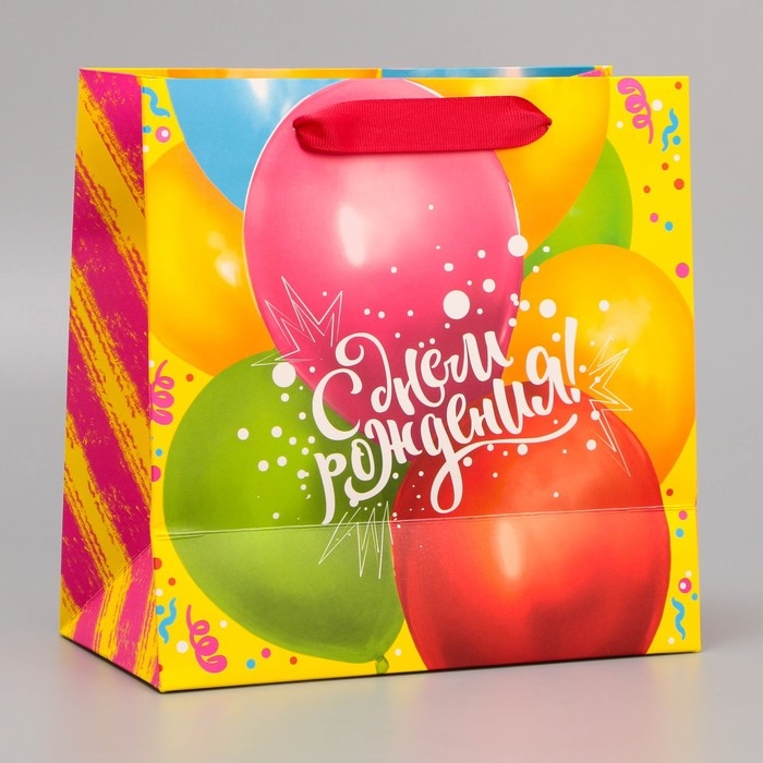 Пакет подарочный ламинированный квадратный, упаковка, «С Днём Рождения!», 22 х 22 х 11см