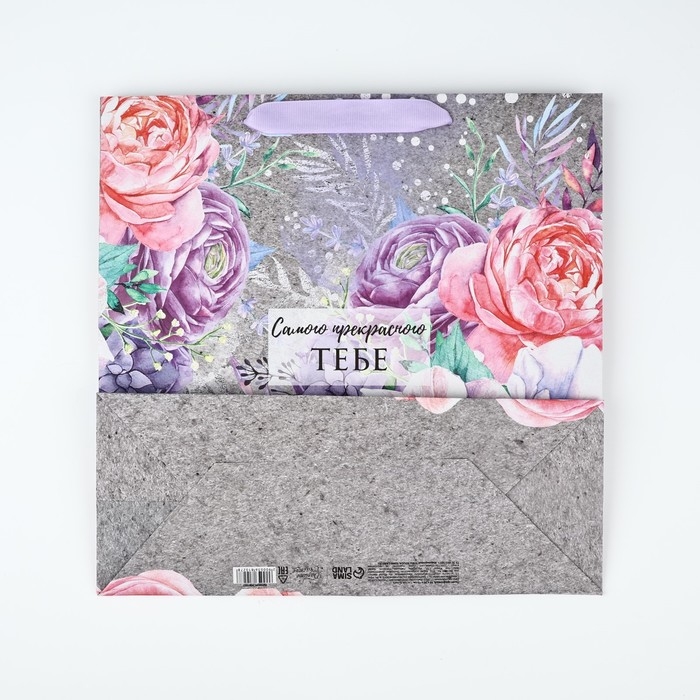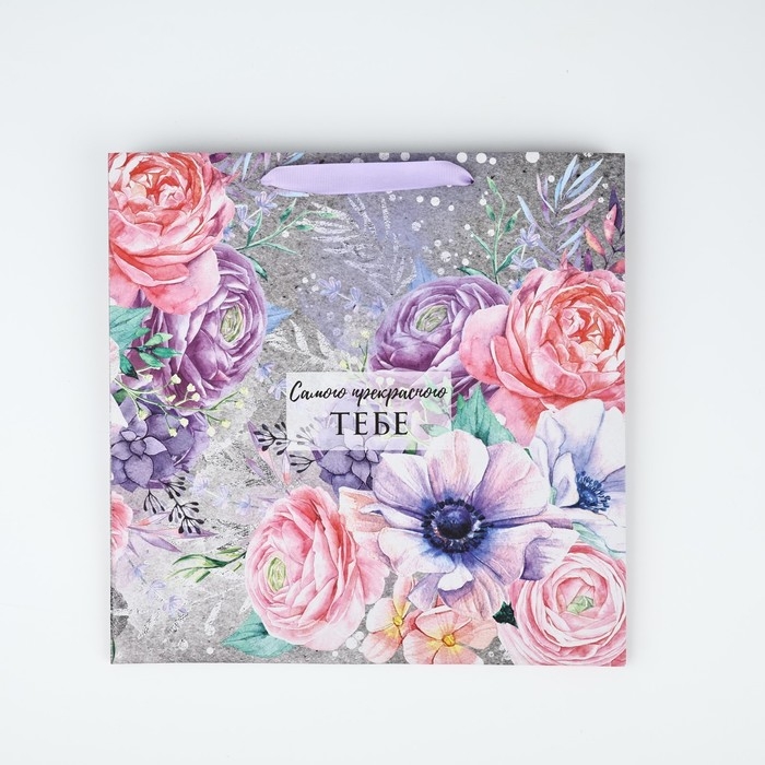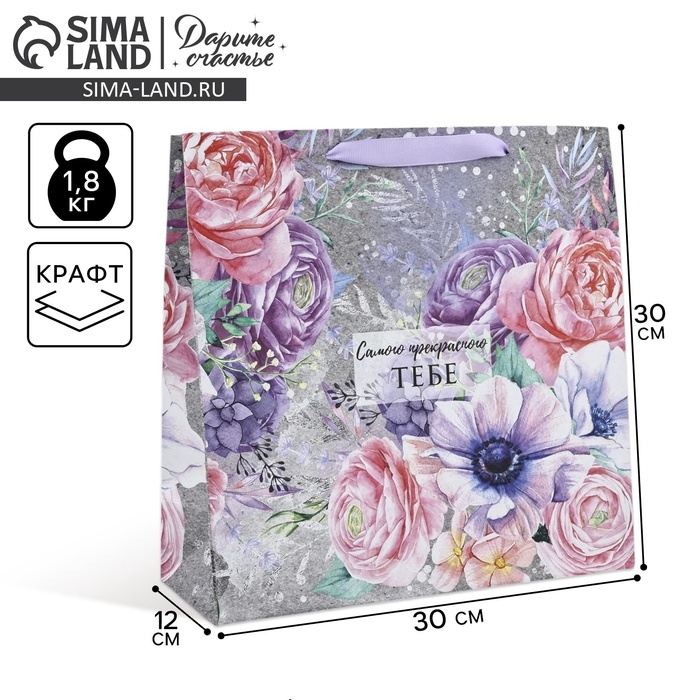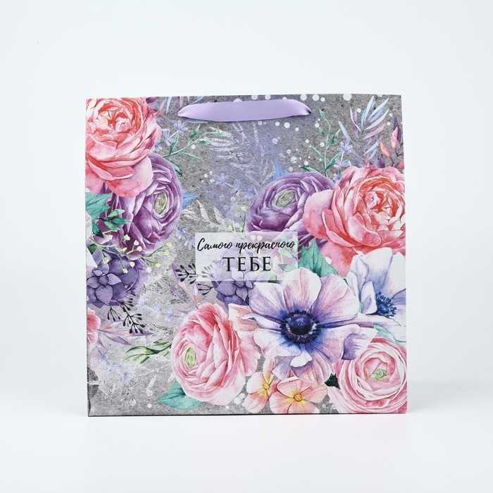 Пакет подарочный крафтовый квадратный, упаковка, «Цветочный вихрь», 30 х 30 х 12 см
