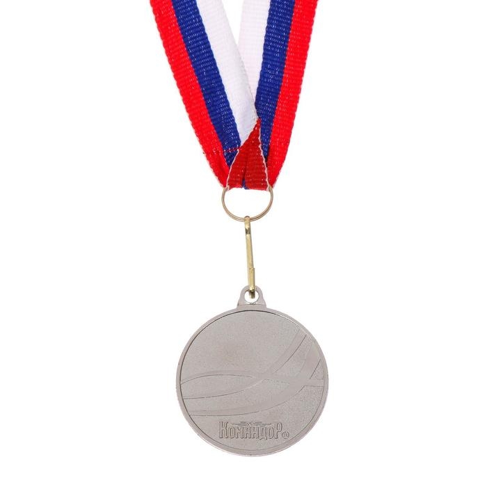 Медаль призовая 079, d= 6 см. 2 место. Цвет серебро. С лентой