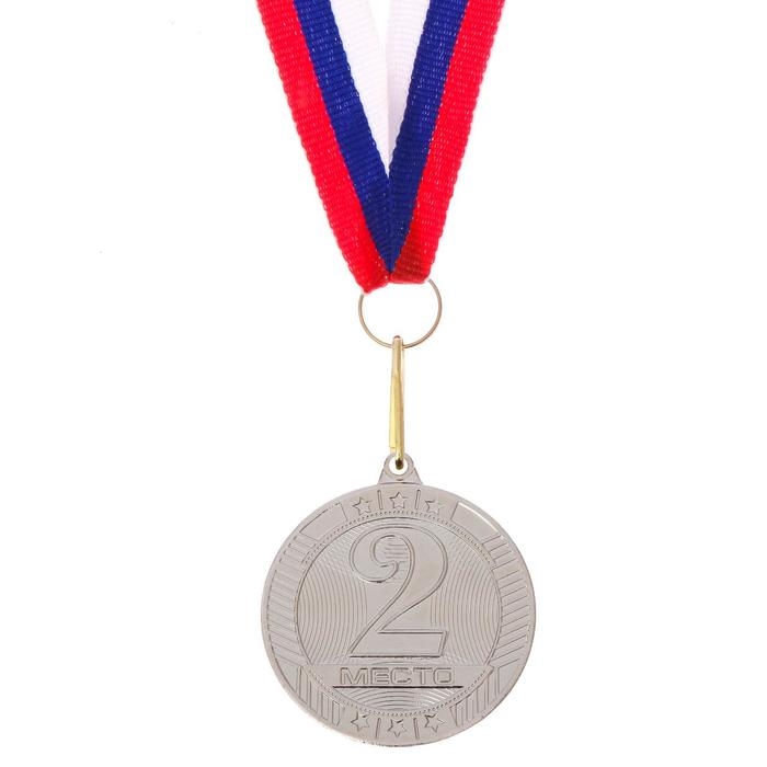 Медаль призовая «2 место» серебро 013, d=5 см, с лентой