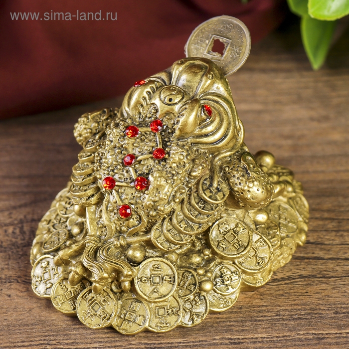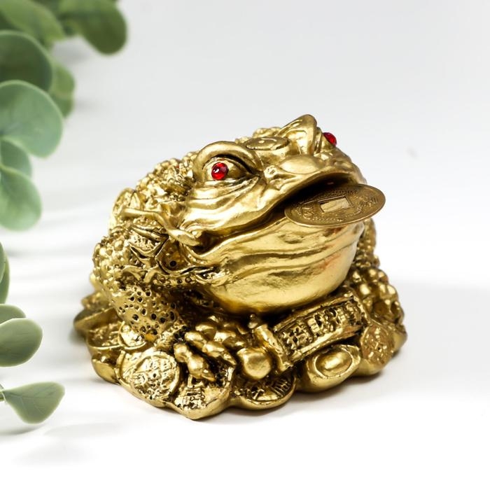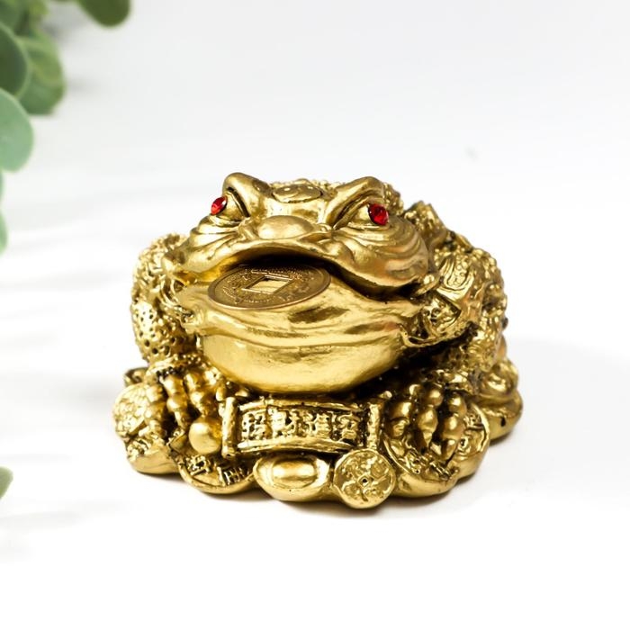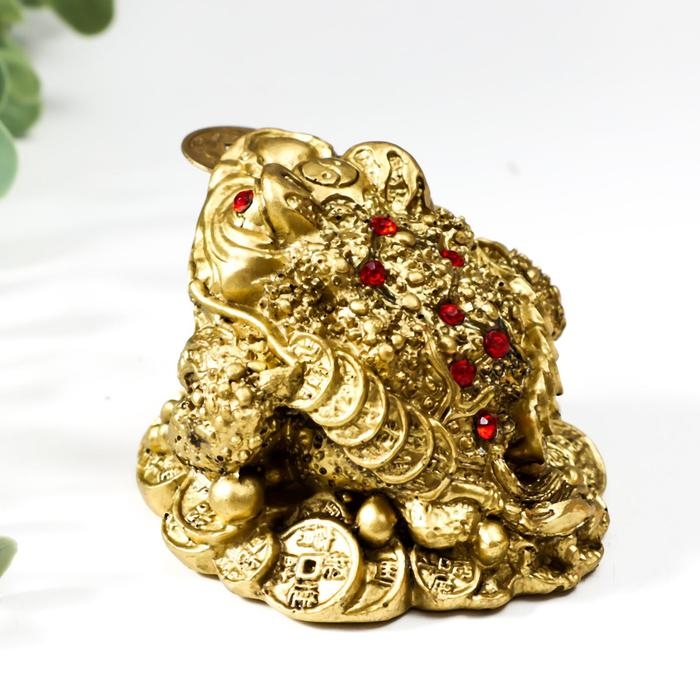 Нэцкэ полистоун под бронзу "Жаба на монетах и слитках с жемчужинами" 6х8,5х8 см