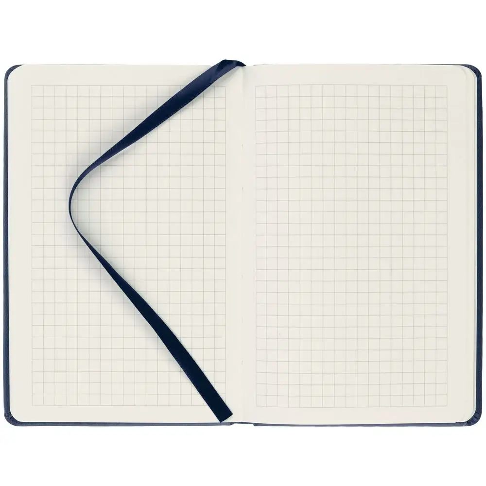 Твердая обложка из материала Latte, синий, ляссе в цвет обложки.