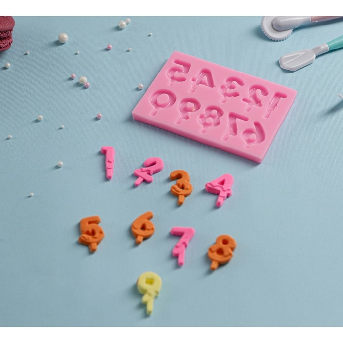 Молд «Цифры для торта», силикон, 9,5×6,5×0,4 см, цвет МИКС