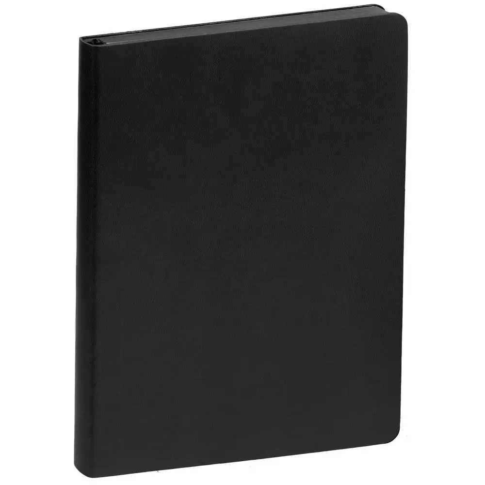 Ежедневник с гибкой обложкой, выполнен из материала Latte, черный, дополнен ляссе в цвет обложки.