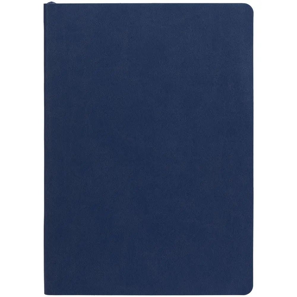 Ежедневник с гибкой обложкой, выполнен из материала Latte, темно-синий, дополнен ляссе в цвет обложки.