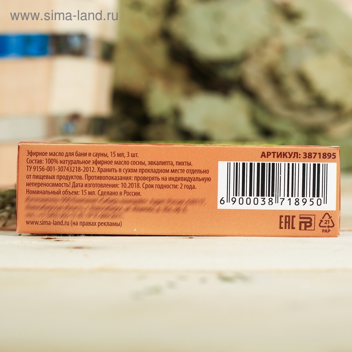 Набор 3 эфирных масла 15 мл "Хозяину бани" пихта, сосна, эвкалипт