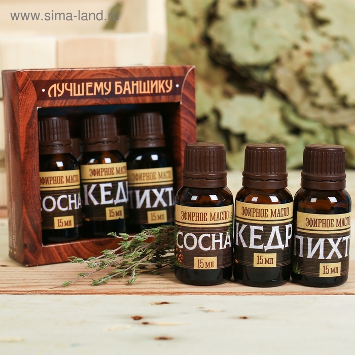 Набор 3 эфирных масла 15 мл "Лучшему банщику" сосна, кедр, пихта