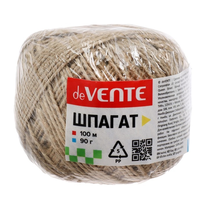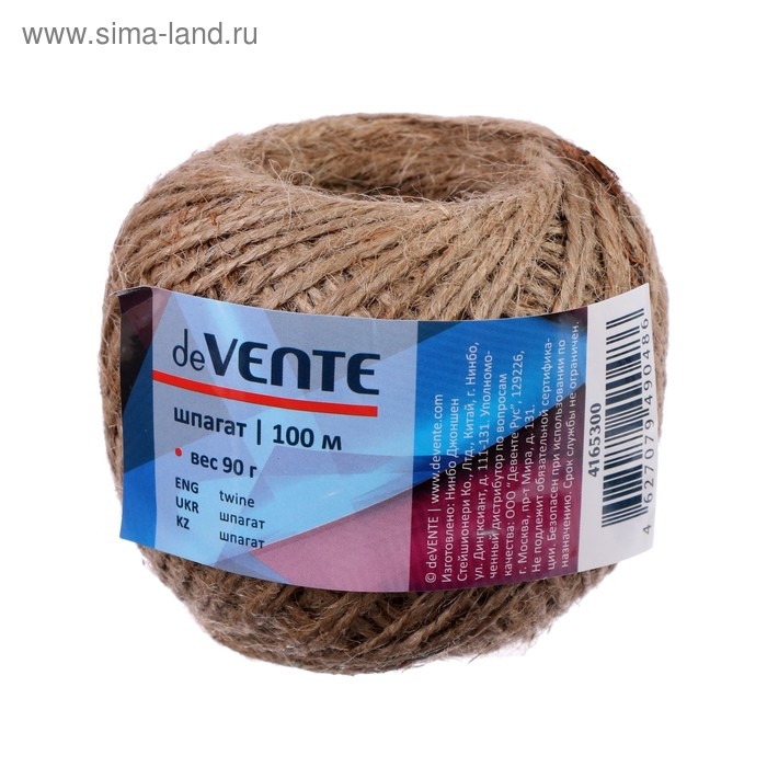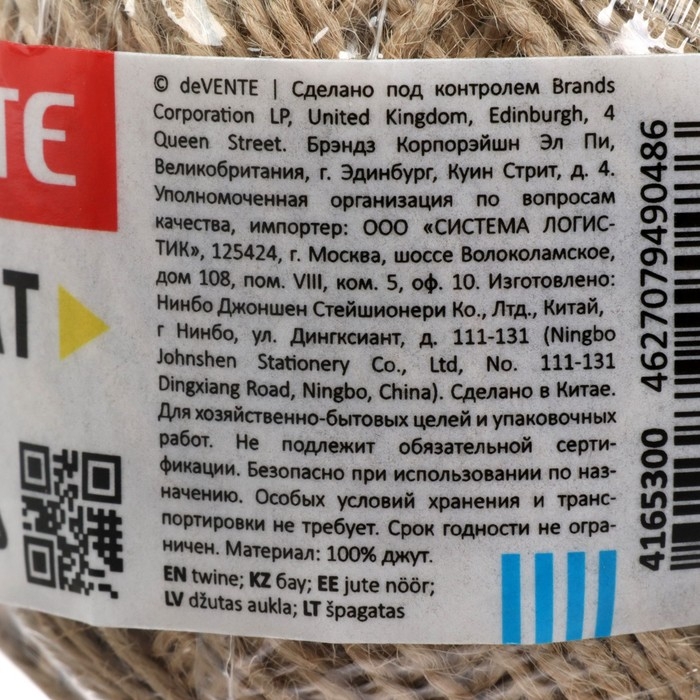 Шпагат джутовый банковский 100 м х 1,5 мм, deVENTE, 90 г, полированный, термоусадочная плёнка
