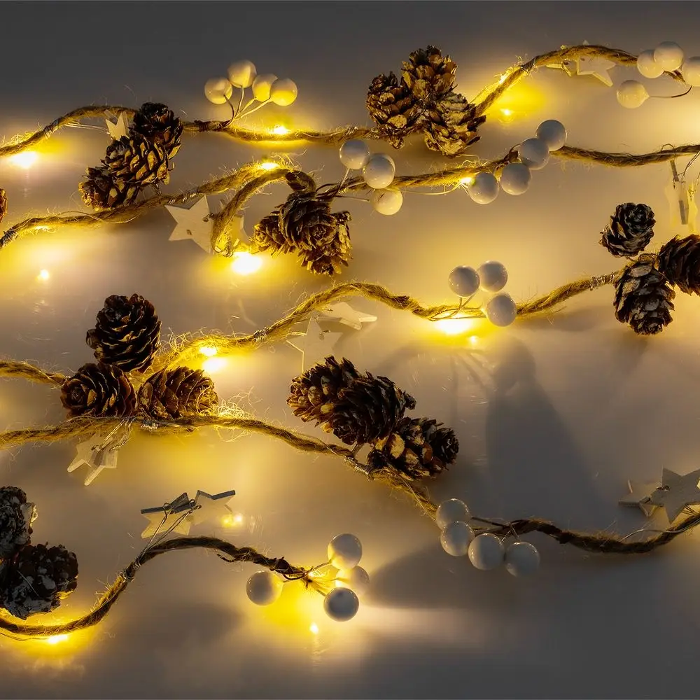 Cones and Berries. С признанием в любви к зиме.Шишки, бусины, звездочки и 20 лампочек с теплым светом. Работает от 3 батареек АА (в комплект не входят).