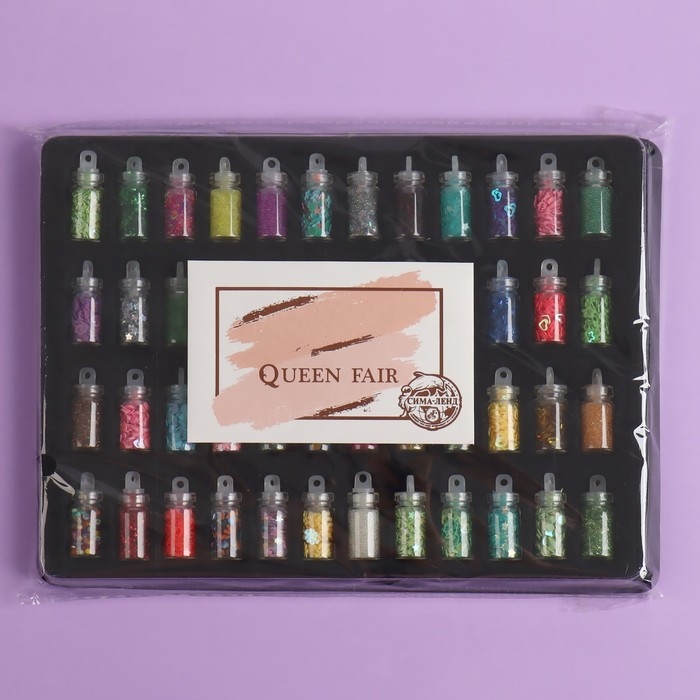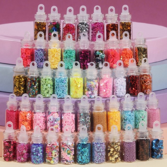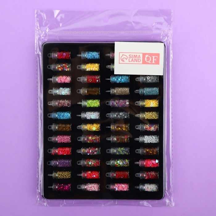 Набор для декора ногтей, в пластиковом органайзере, набор 48 бутылочек, разноцветные