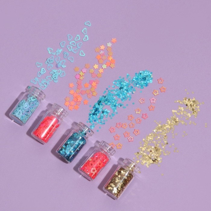 Набор блесток для декора, мелкий помол, цвет алый, 6 штук