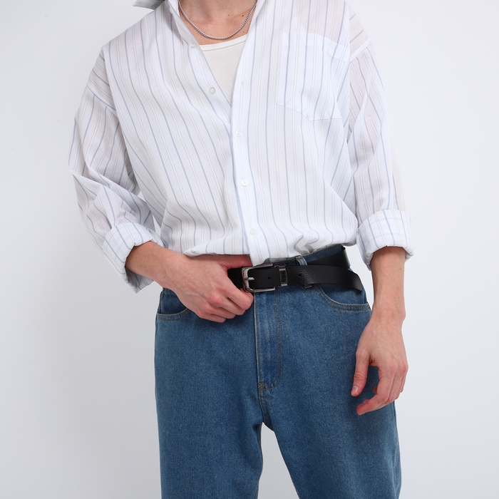 Ремень мужской, ширина 3,5 см, пряжка металл, цвет чёрный