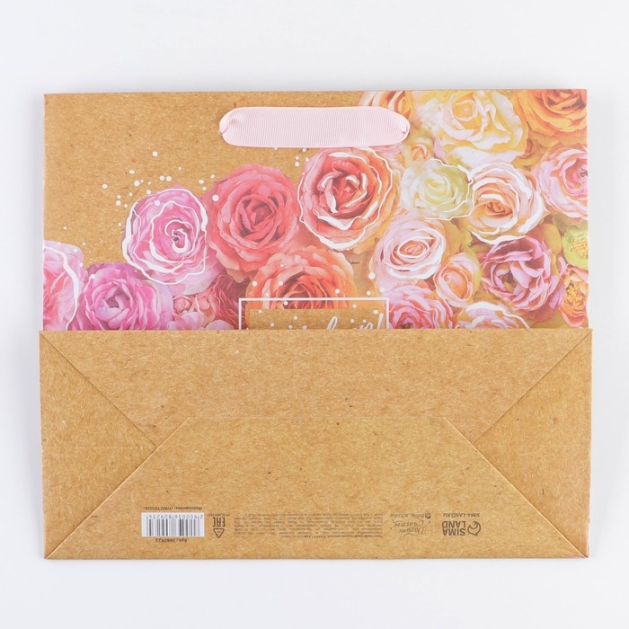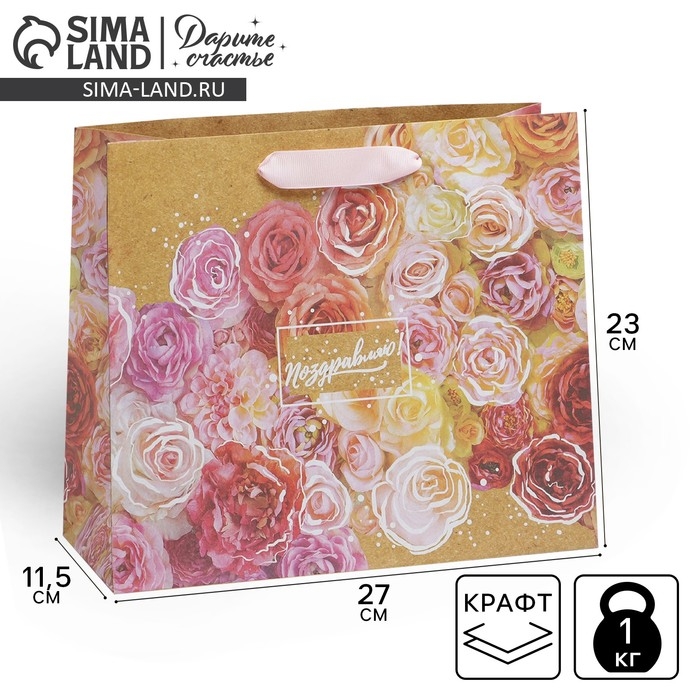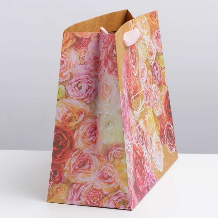 Пакет подарочный горизонтальный крафтовый, упаковка, «Цветочное настроение», ML 27 х 23 х 11,5 см