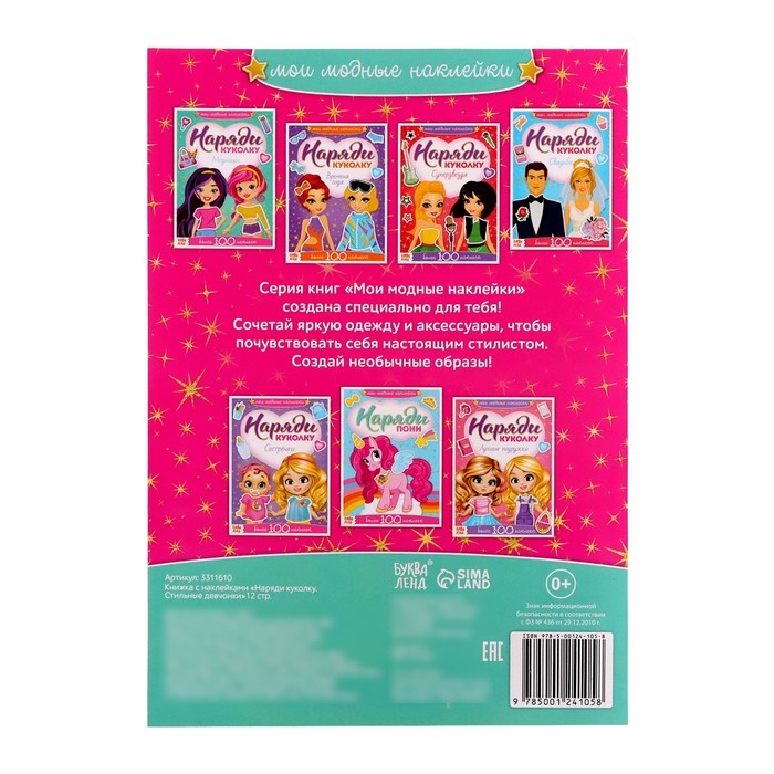 Серия книг «Наряди куколку» создана специально для юных модниц! Ребёнок сможет сочетать яркую одежду и аксессуары и почувствует себя настоящим стилистом. Создавайте вместе с ребёнком самые необычные образы для подружек и дополняйте интерьер эффектным декором.