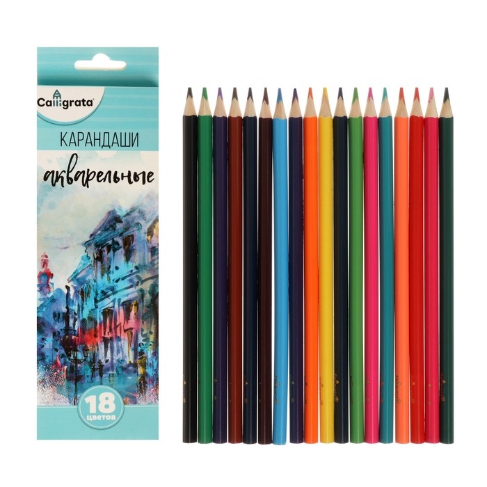 Карандаши акварельные 18 цветов, в картонной коробке, заточенные