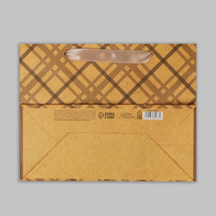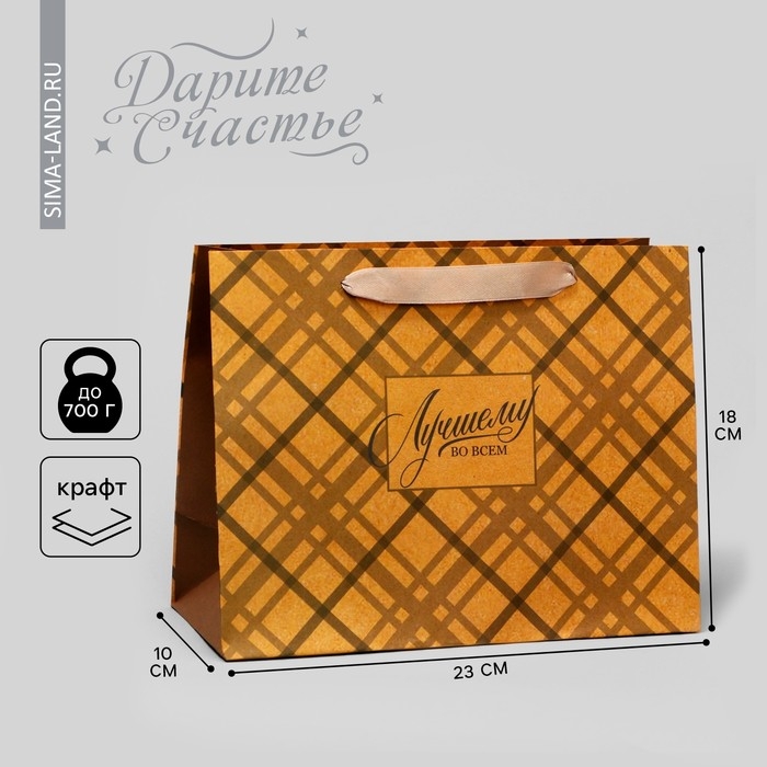 Пакет подарочный крафтовый горизонтальный, упаковка, «Лучшему во всём», MS 23 х 18 х 8 см