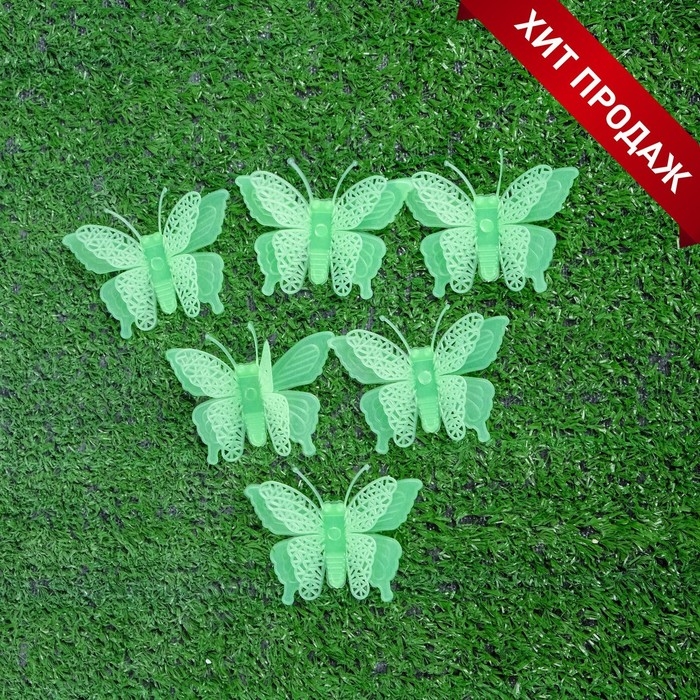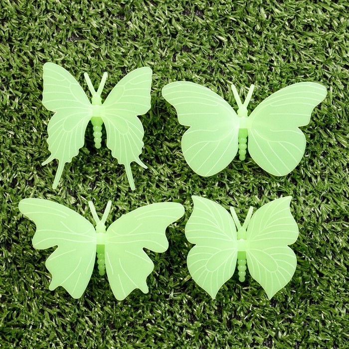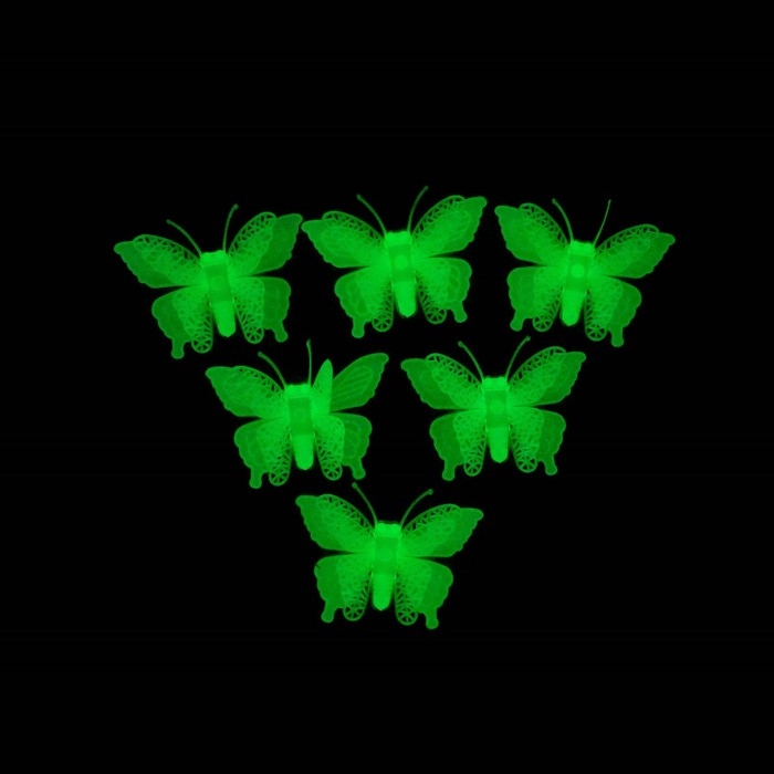 Набор светящегося декора "Бабочки" 6 шт., зелёный, 7 × 5,5 × 5 см, МИКС