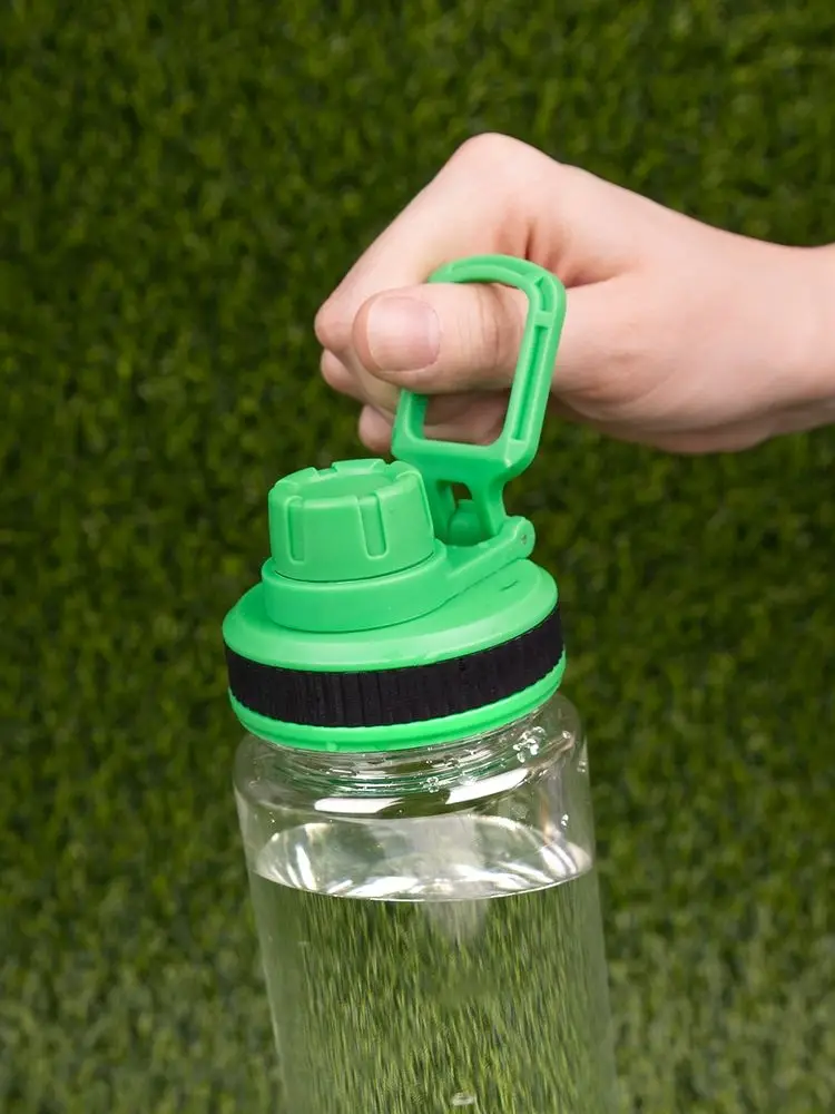 Большая бутылка с откручивающейся крышкой отверстия для питья и ручкой-петлей для переноски. Наполнить всего пару раз — и дневная норма воды будет выпита.
