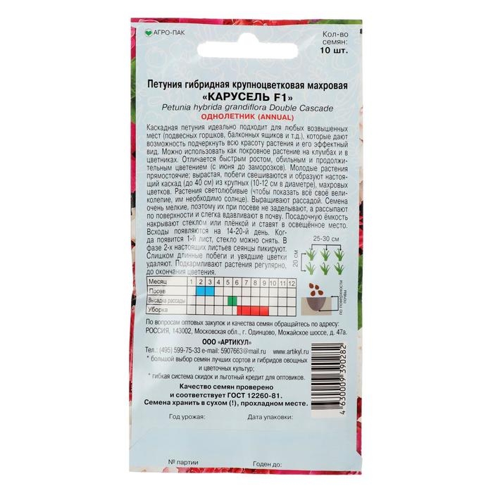 Семена цветов Петуния крупноцветковая «Карусель» F1, О, 10 шт.