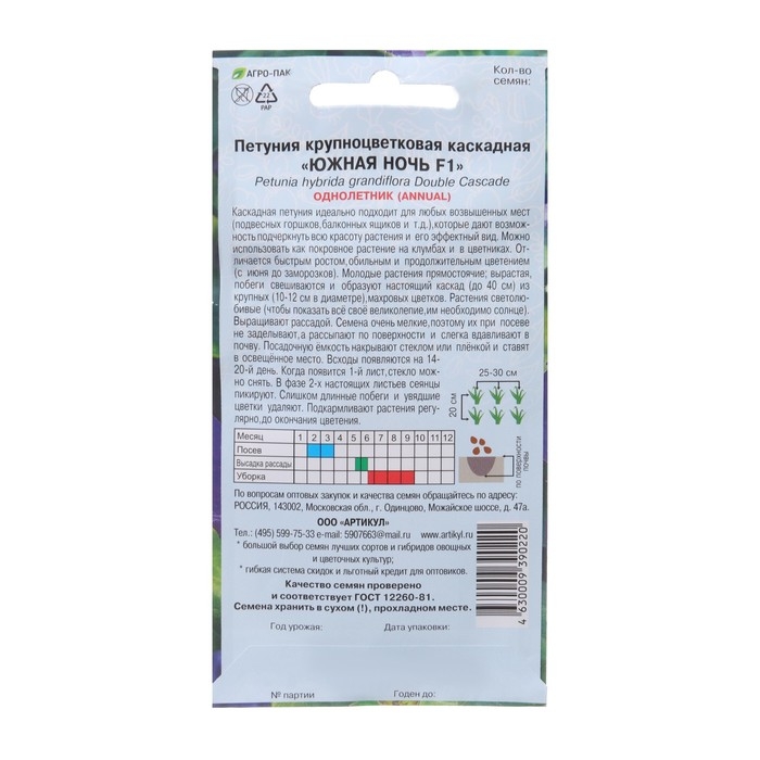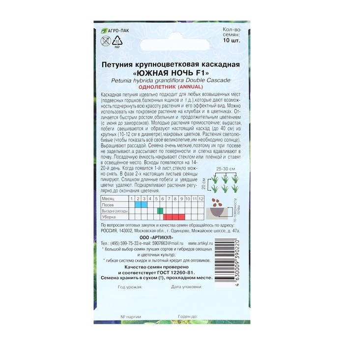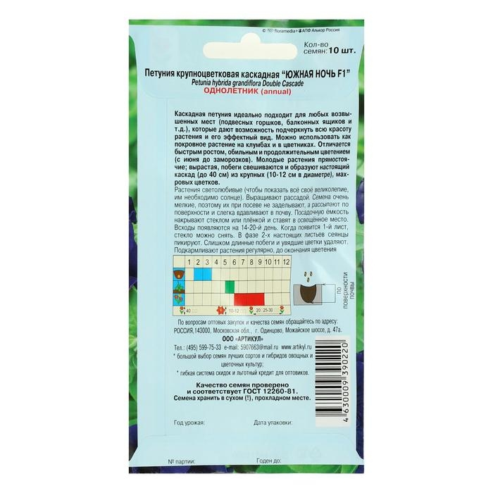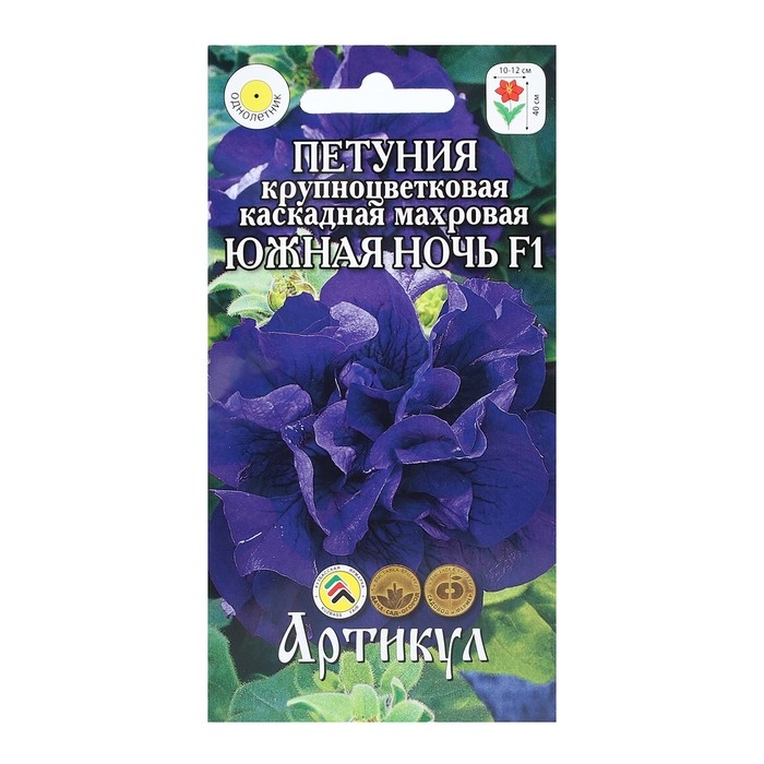 Семена цветов Петуния крупноцветковая махровая «Южная ночь» F1, О, 10 шт.
