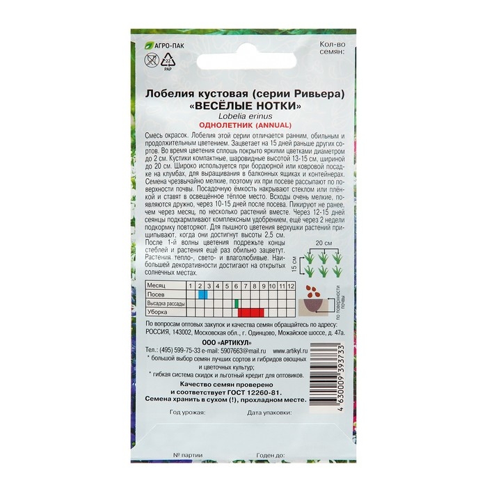 Семена цветов Лобелия кустовая «Веселые нотки», О, 8 шт.