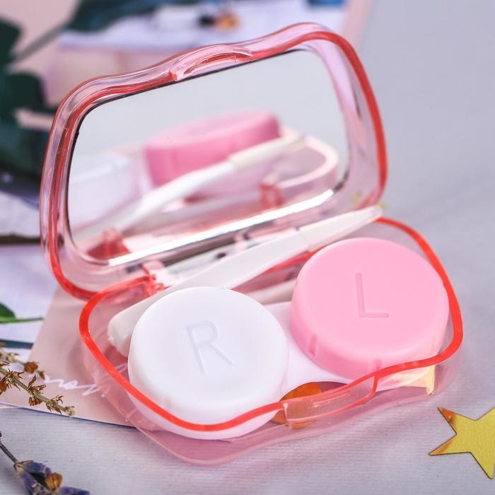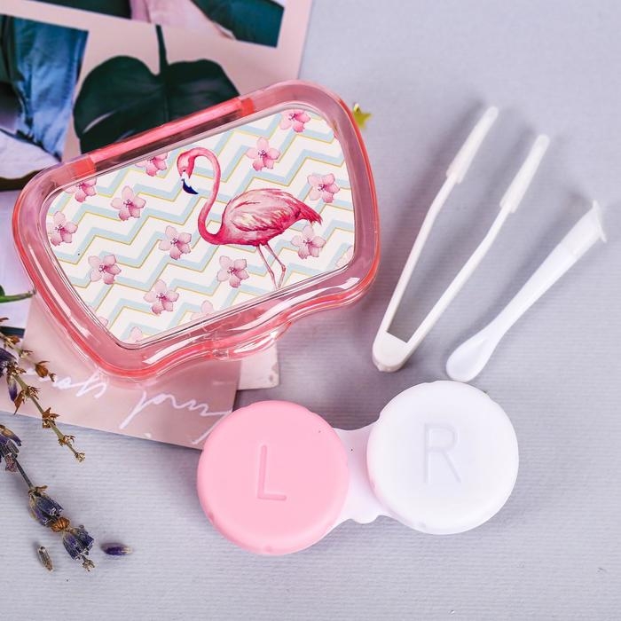 Контейнер для линз с зеркалом "Фламинго"