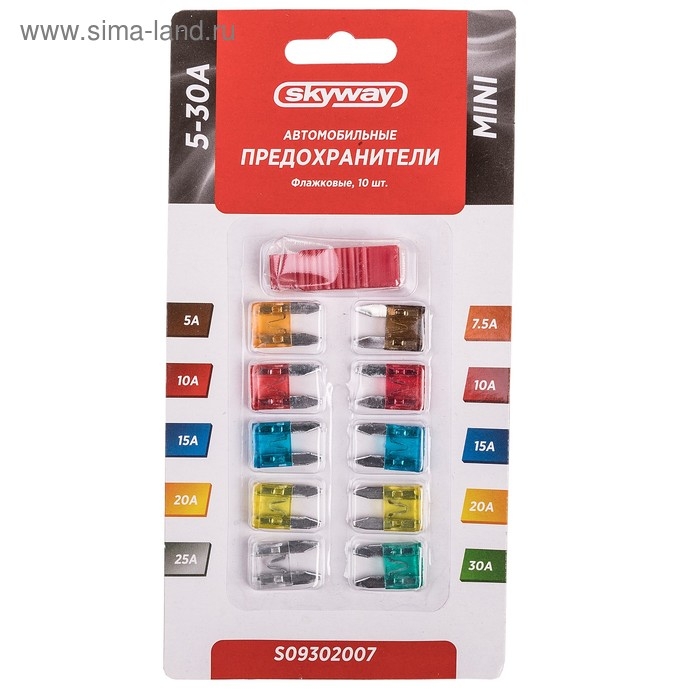 Предохранитель флажковый Skyway, "мини", 5-30 А, блистер, набор 10 шт