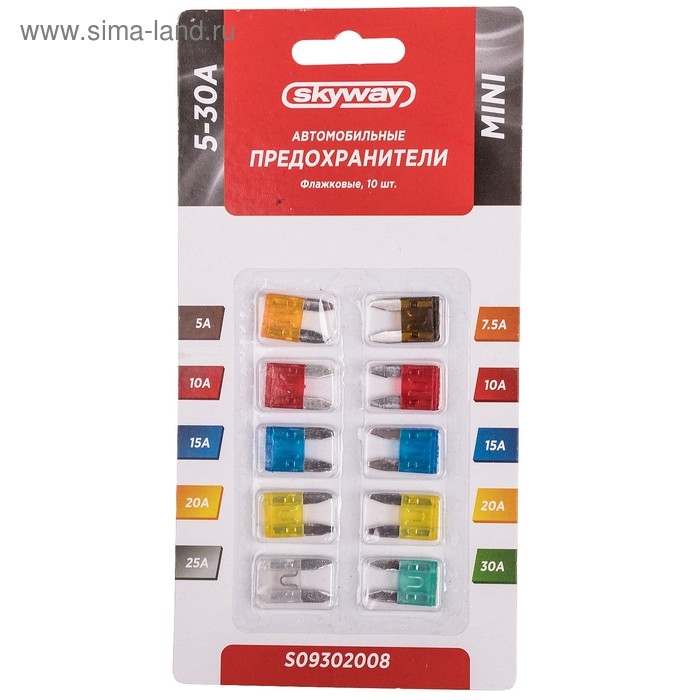 Предохранитель флажковый Skyway, "мини", 5-30 А, блистер, набор 10 шт