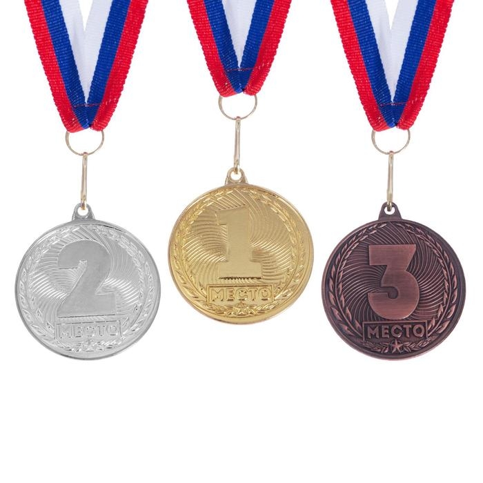 Медаль призовая 006, d= 7 см. 1 место, триколор. Цвет золото. С лентой