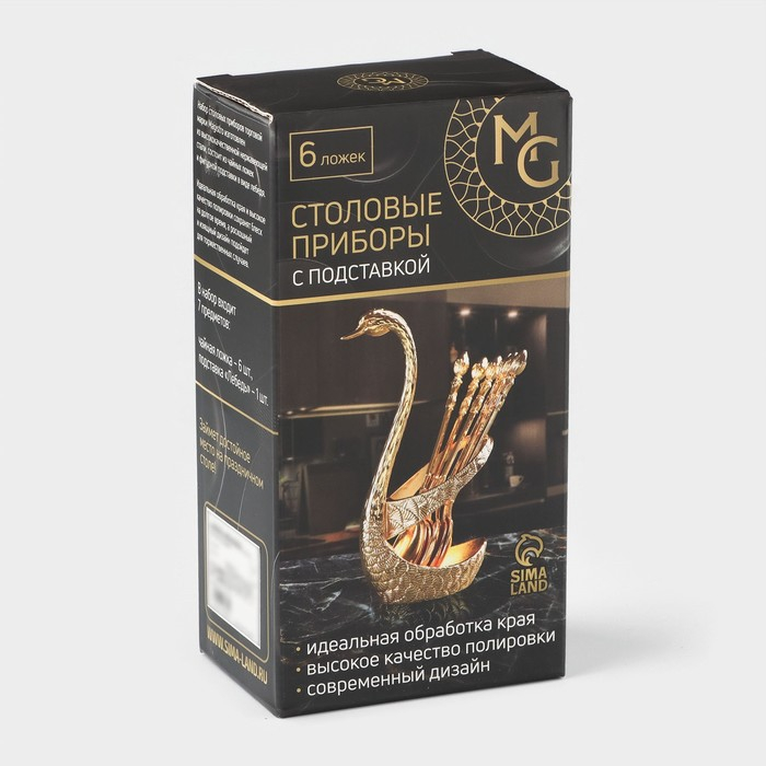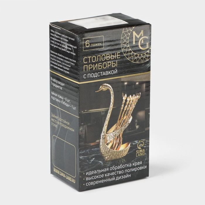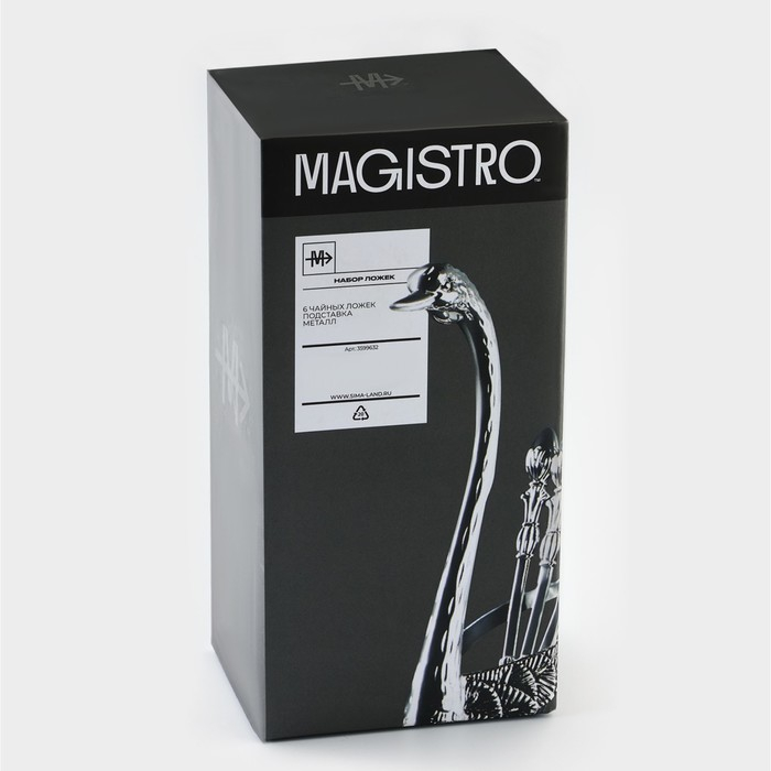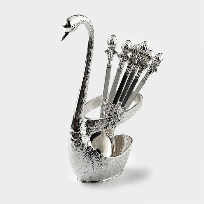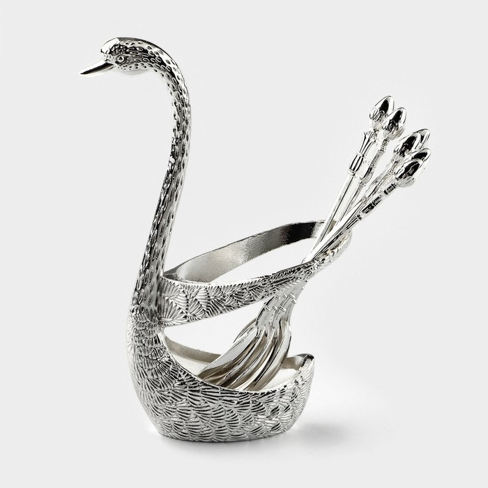 Набор ложек на подставке Magistro «Серебряный лебедь», 7,5×5×14 см, цвет серебряный