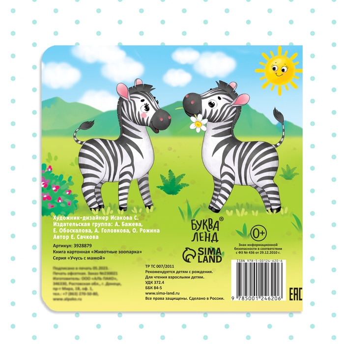 Картонная книга с яркими картинками познакомит малыша с обитателями зоопарка. Красочные иллюстрации и весёлые стихи помогут ребёнку запомнить повадки и особенности зверей.