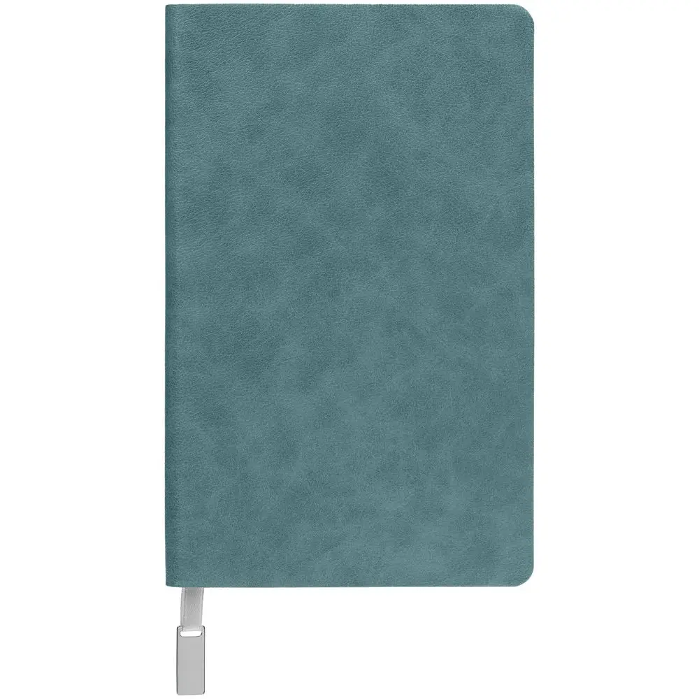 Ежедневник с гибкой обложкой, выполнен из материала Petrus, голубой JJ, дополнен серым ляссе с металлическим шильдиком.