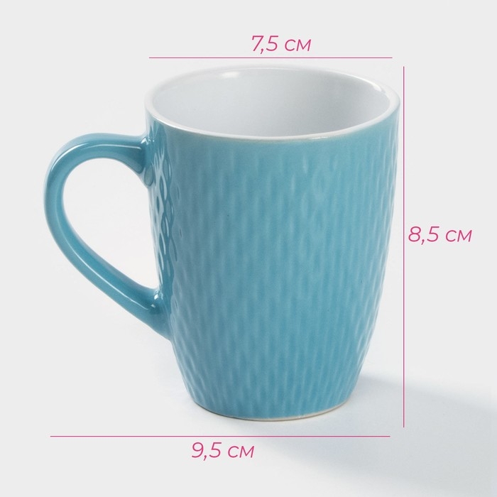 - Элегантный дизайн: однотонная поверхность и рельефная текстура придают кружке стильный и современный вид.