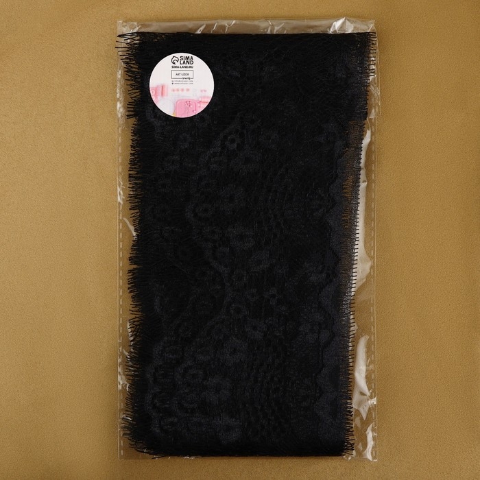 Кружево эластичное, 17 мм × 10 ± 1 м, цвет чёрный