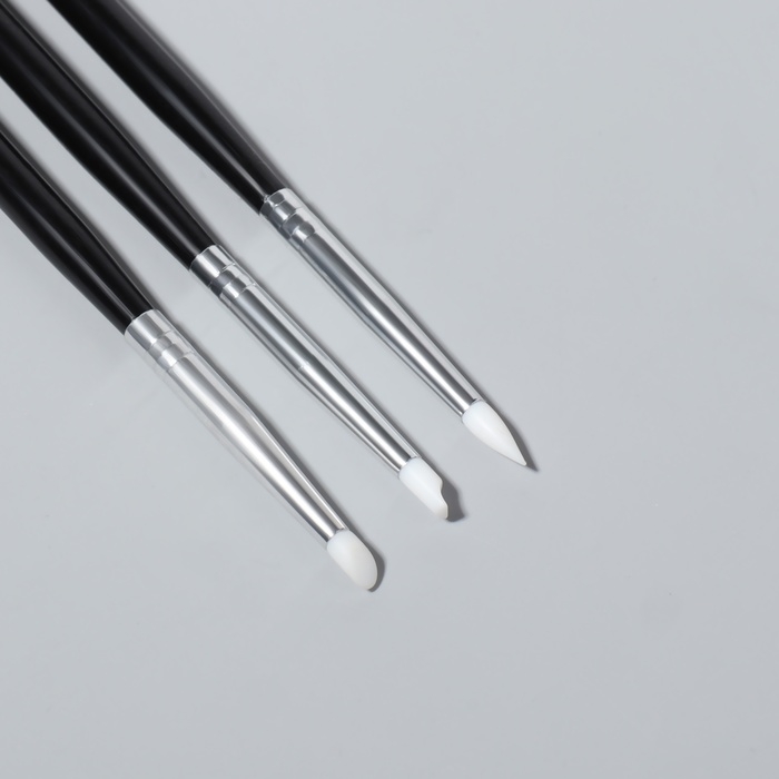Набор силиконовых кистей для дизайна ногтей, 3 шт, 18 см, цвет чёрный