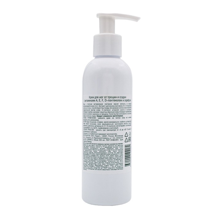 Крем для ног обладает сильным заживляющим действием. Витамины F и Е способствуют быстрому обновлению клеток. D-пантенол смягчает, питает и заживляет кожу на ступнях ног. В состав крема добавлено наносеребро, которое блокирует размножение бактерий и ставит защитный барьер от грибка. Наносеребро устраняет воспаление и раздражение кожи. После нанесения крема остается ощущение заботы и комфорта. Способ применения: нанести крем для ног мягкими массирующими движениями. Крем размягчит жёсткую кожу на ногах и оставит ощущение заботы и комфорта.