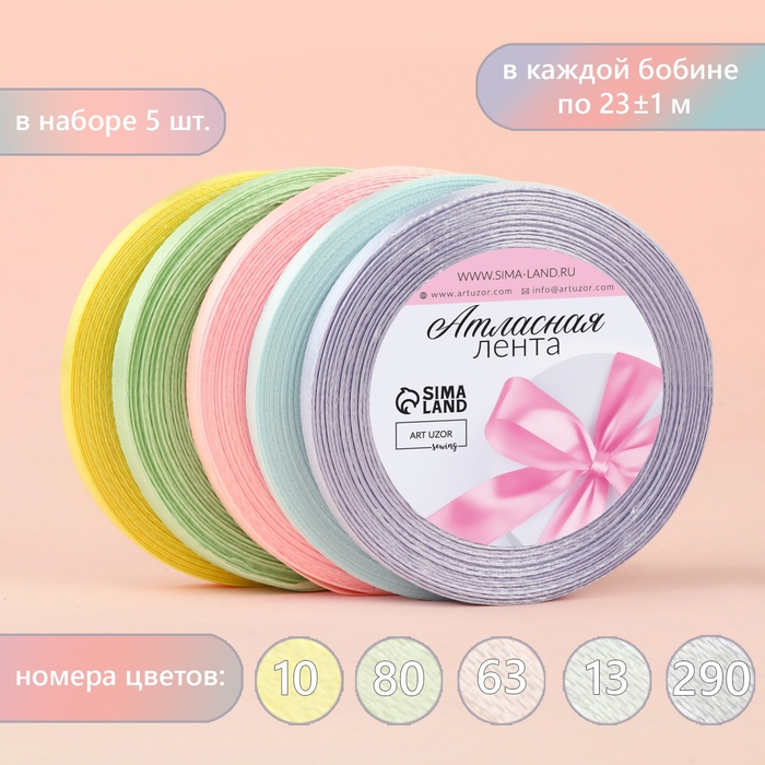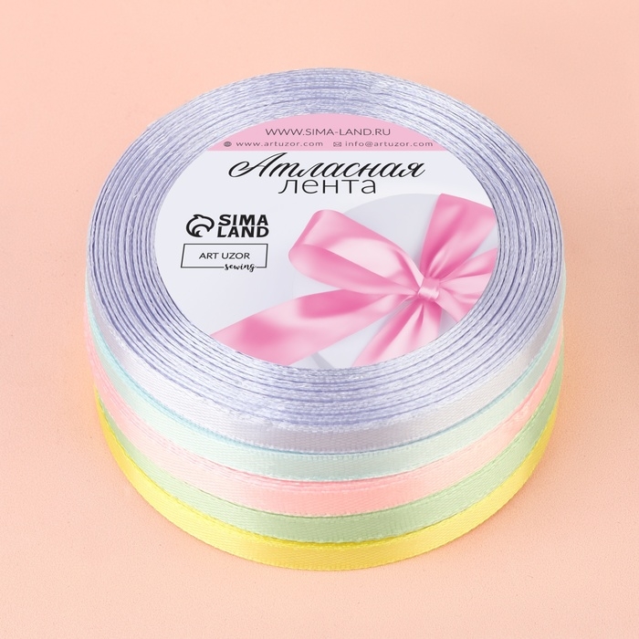 Набор атласных лент «Нежный», 5 шт, размер 1 ленты: 6 мм × 23 ± 1 м