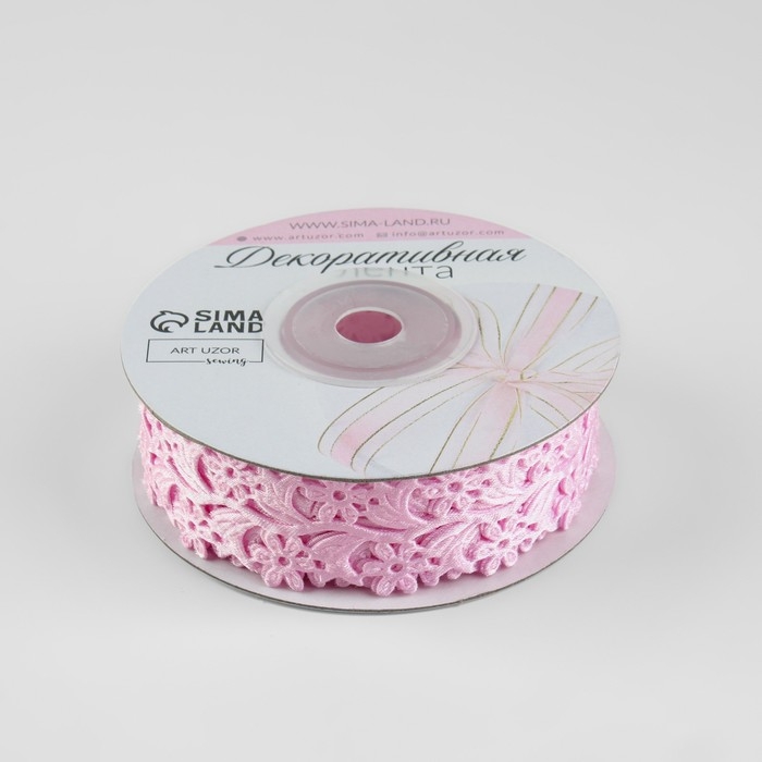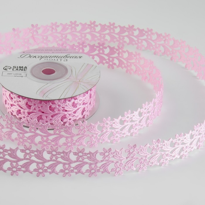 Лента фигурная «Ромашки», 25 мм, 9 ± 0,5 м, цвет розовый