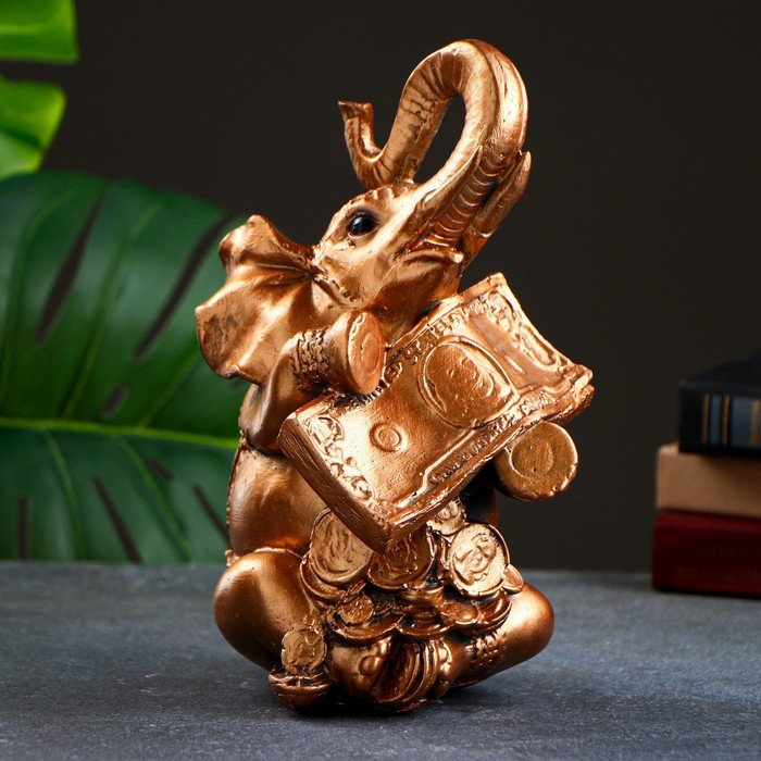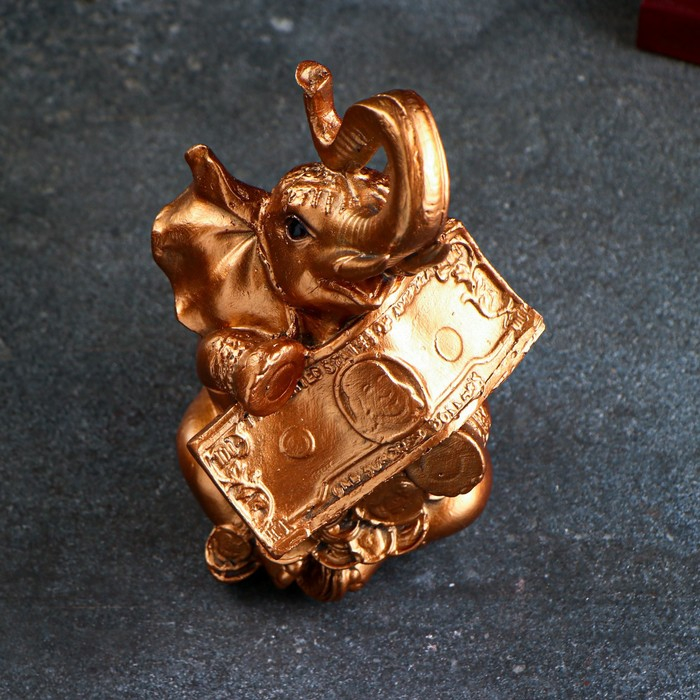 Копилка "Слон с деньгой" бронза, 14х14х24см