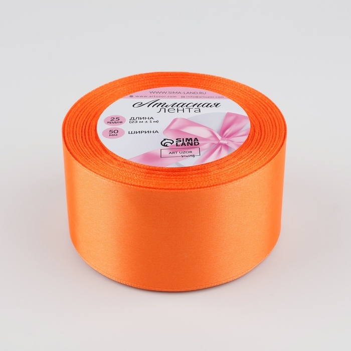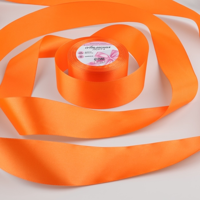 Лента атласная, 50 мм × 23 ± 1 м, цвет насыщенный оранжевый №144