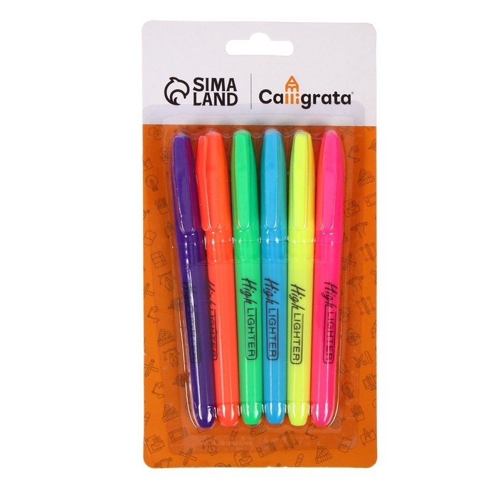Набор маркеров-текстовыделителей, 6 цветов, наконечники скошенные, 4 мм